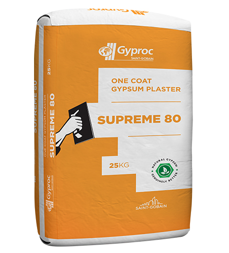 - Saint Gobain Gyproc Supreme 80 / Supreme 68 one coat gypsum plaster can be applied on most internal surfaces like Bricks, Blocks & RCC (Concrete) surfaces