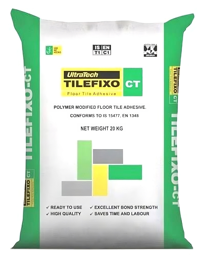 UltraTech TILEFIXO is a polymer modified cement based high performance, high strength, high quality tile adhesive developed to fix tiles, Natural Stones over walls and floors. Suitable for both internal and external, thin bed applications. There are four variant of TILEFIXO for different application.CT-Superior general purpose Cementitious Tile Adhesives recommended for mass flooring requirements on concrete substrate and small to medium size vertical application.