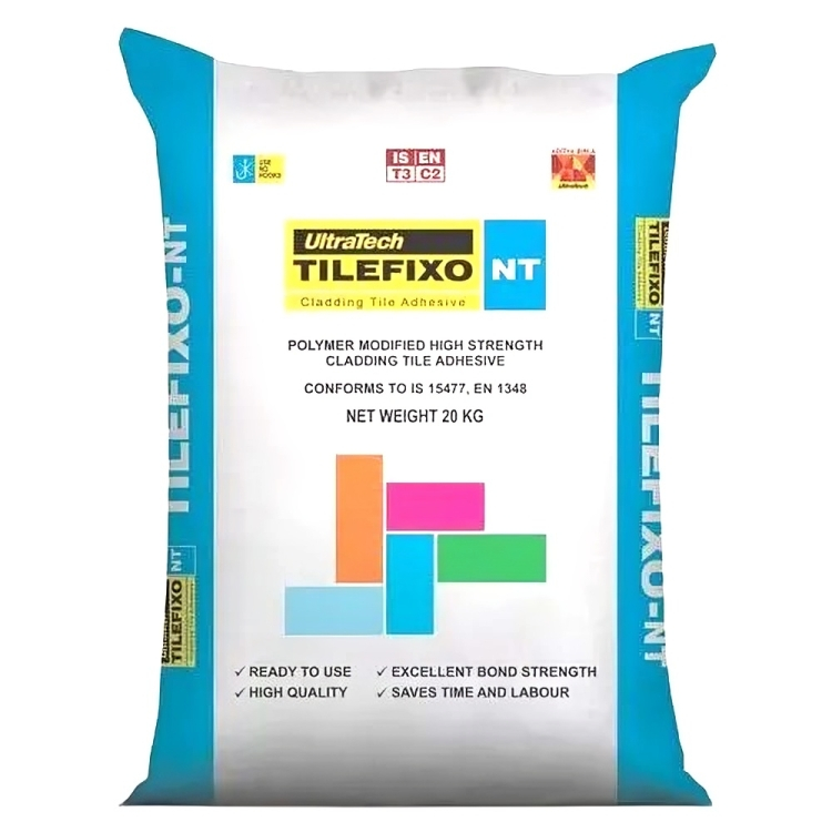 UltraTech Tilefixo-NT is a polymer modified cement based adhesive developed for high performance, high strength, and high-quality applications to fix large size tiles/slabs of granite, marble, stones over walls and floors. It is suitable for both internal and external, thin bed applications. Tilefixo-NT is specifically recommended for fixing large size tiles or slabs of granite, marble, stone wall cladding, and flooring, and should be applied over cementitious substrates only.Specially designed Tile Adhesive for large size natural stone like varieties of Granite and other stones for vertical and horizontal application over concrete and plastered surface for vertical application.