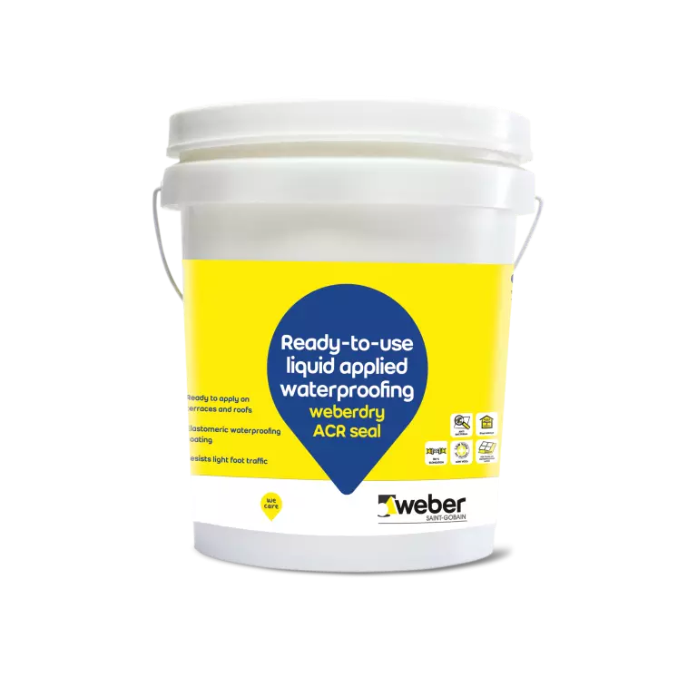 Weberdry ACR seal is a ready-to-use, fibre reinforced elastomeric, super flexible acrylic waterproof coating. It is easy to apply and forms a seamless waterproof barrier which is UV resistant and capable of handling light foot traffic. These properties along with its crack bridging ability make it ideal for waterproofing roofs and terraces, as an exposed waterproofing coat.
