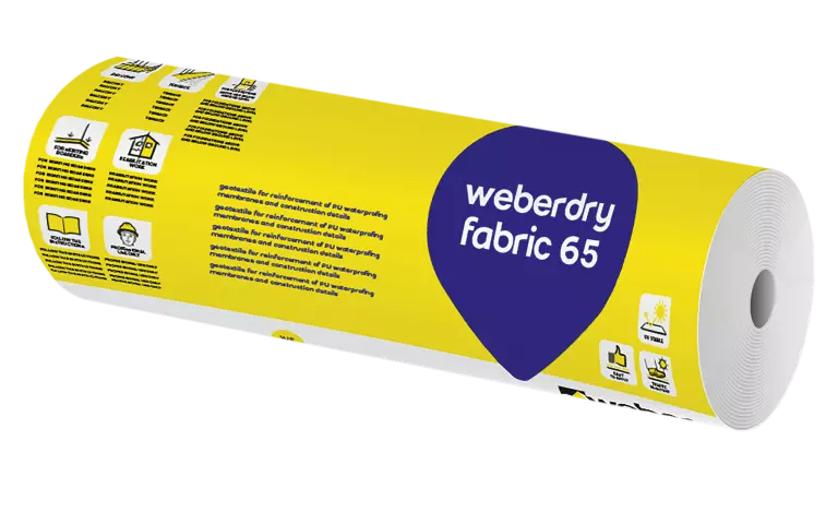 Weberdry PUR fabric 65 is mainly used as a reinforcing fabric for use in combination with the weberdry PUR liquid-applied waterproofing membranes. Applied in combination with weberdry PUR liquid-applied waterproofing membranes.