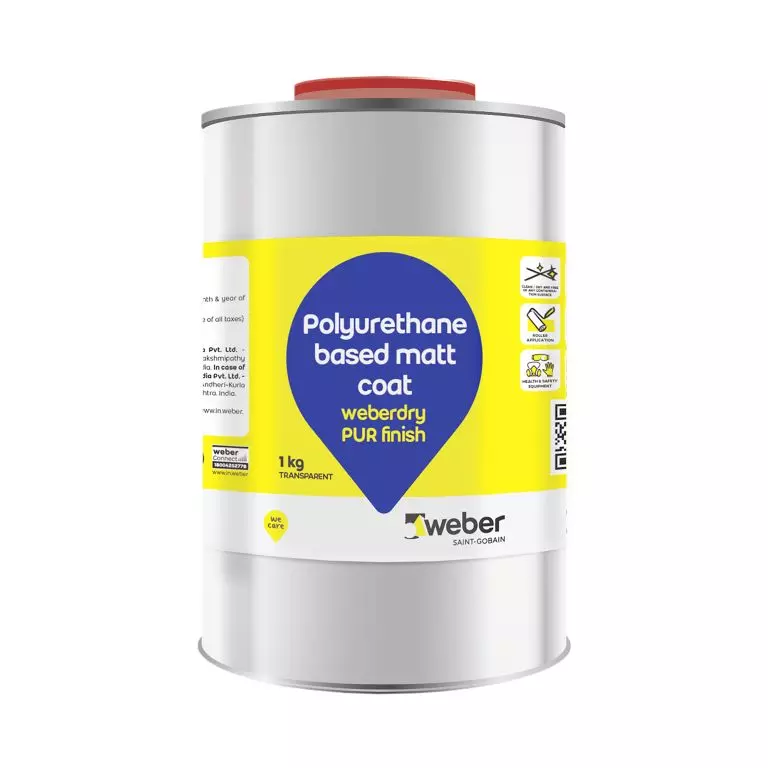 Weberdry PUR finish is a satin-matt, transparent, semi-rigid, one component, aliphatic polyurethane coating, used for matt finishing over weberdry PUR trans polyurethane coatings.weberdry PUR finish is UV-stable, non-yellowing, abrasion-resistant, alkali and chemical resistant. It gives the surface a satin-matt look.